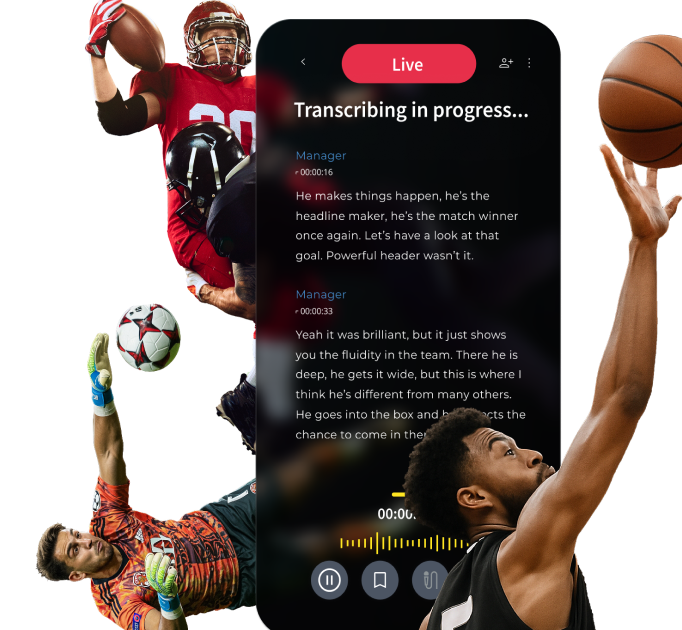 Pull the perfect quote from a live transcript and have it captioned for your socials in seconds. Transcribe and translate press conferences in 70+ languages  to capture global fanbases.