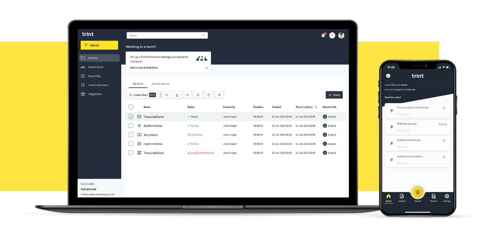 It doesn’t stop there! Trint’s new dashboard is our new foundation to continue innovating for our users. If you’re already a Trint user, we are excited to hear what you think and will continue to build the best experience for you and all our other users across the Trint community.