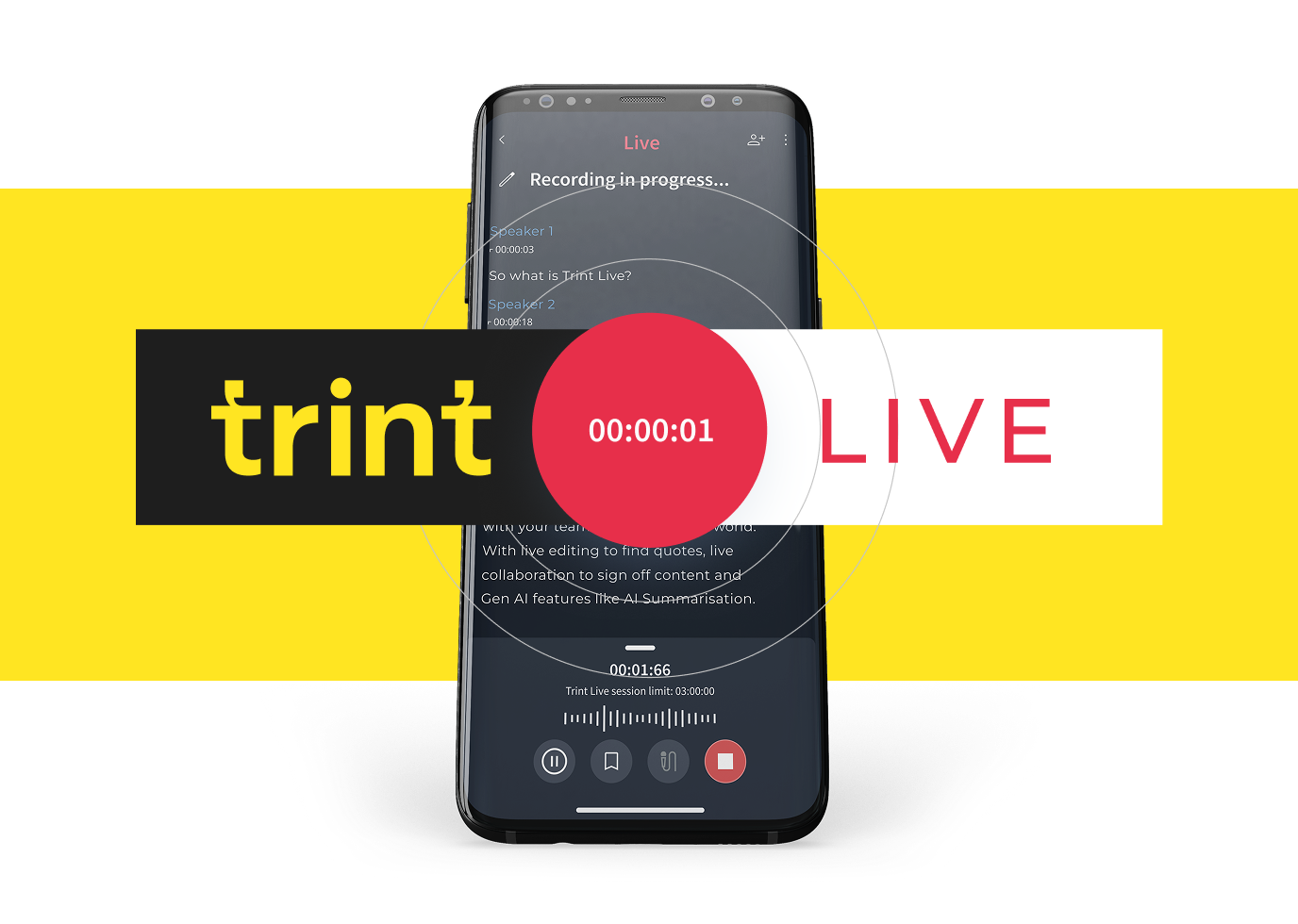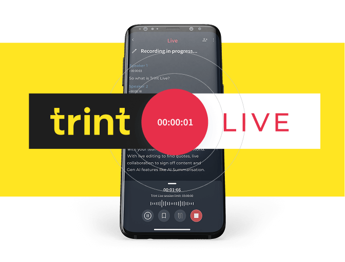 Mit Trint können Sie Audio & -Videodateien schnell in Text konvertieren, der bearbeitet, durchsuchbar und kollaborativ ist. So können Ihre Teams in Echtzeit zusammenarbeiten und wichtige Momente schneller als je zuvor in Artikel, Soundbites, Skripte und Podcasts verwandeln.