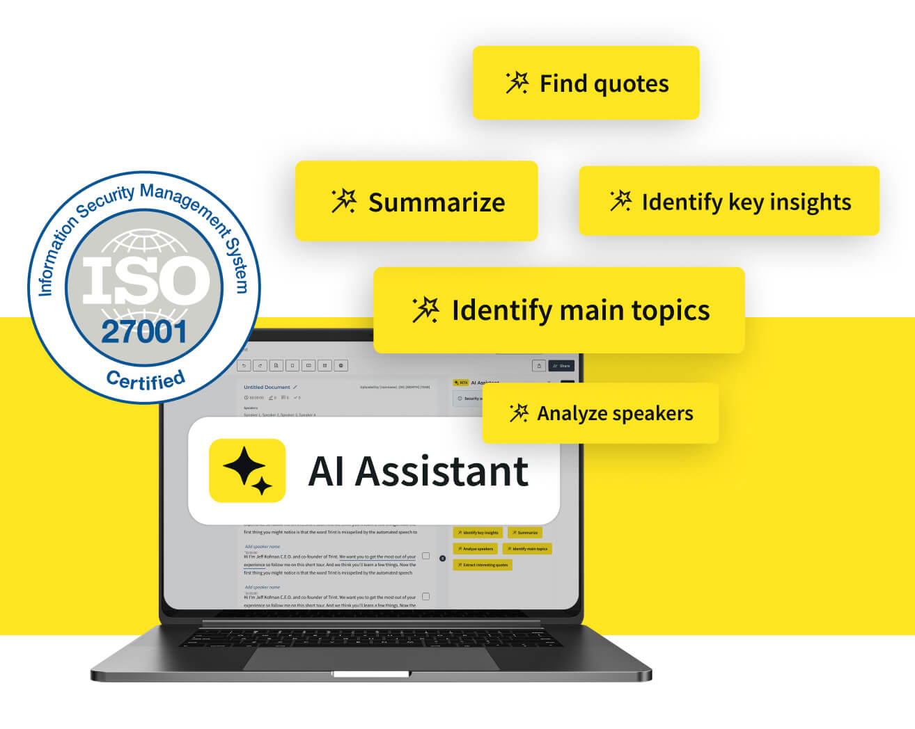 Trint est une plateforme de création de contenu de pointe pour les médias. Nous sommes les pionniers de l'IA depuis 2014 et, surtout, nous veillons à ce qu'elle s'intègre parfaitement à vos flux de travail.