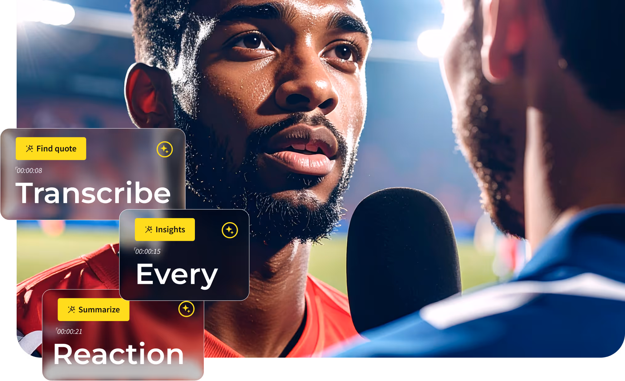 Fans expect to know the latest from their favourite team 24/7. Get instant reactions from managers, players and spectators by live transcribing in the moment with Trint. Then use AI Summaries to quickly create content that can be shared with the world.