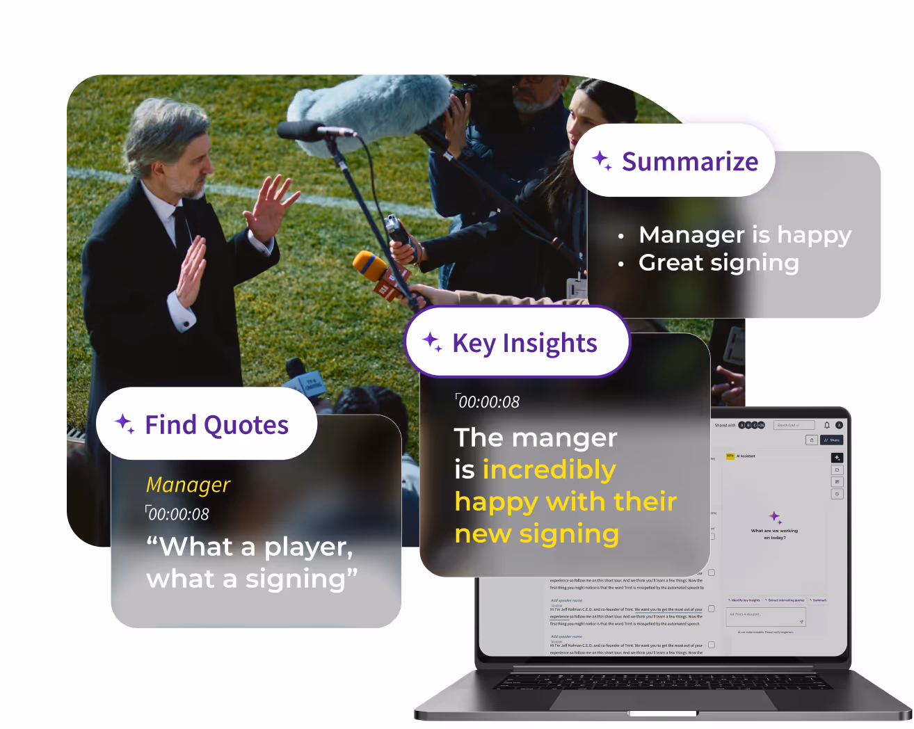 No waiting around to upload recordings. No pressure to accurately take notes. Just hyper-efficient media teams turning quotes into content faster than ever.