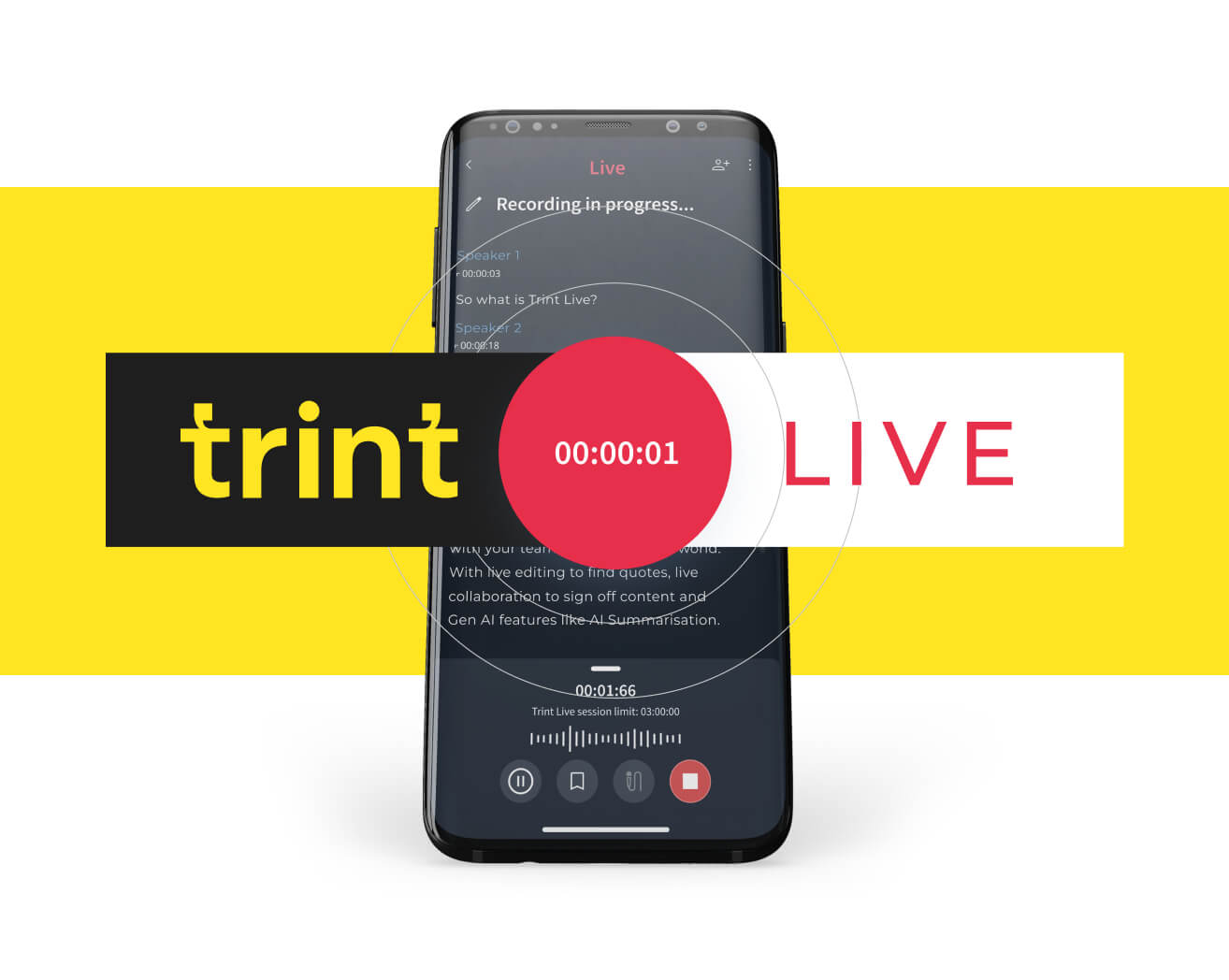 Our mobile app comes with offline resilience. So if you’re ever live transcribing and you lose connectivity like on a train – there’s no need to panic. The app will still capture and, once network or WiFi is restored, your transcript will catch up again.